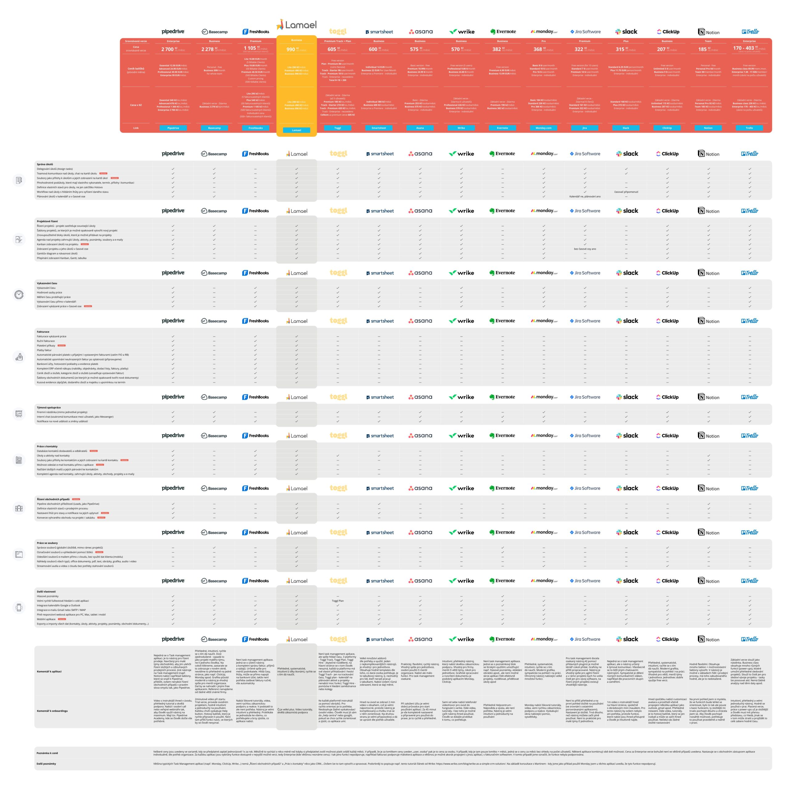 Každý nástroj v něčem vyniká a může s ledovým klidem konkurovat Lamaelu, nenašli jsme ale jediný, který by obstál ve všech porovnávaných oblastech. Za naším řešením si stojíme a sami ho každý den využíváme. Při každodenní práci vám ušetří hromadu času i starostí a stane se vaší pravou rukou a virtuální kanceláří.